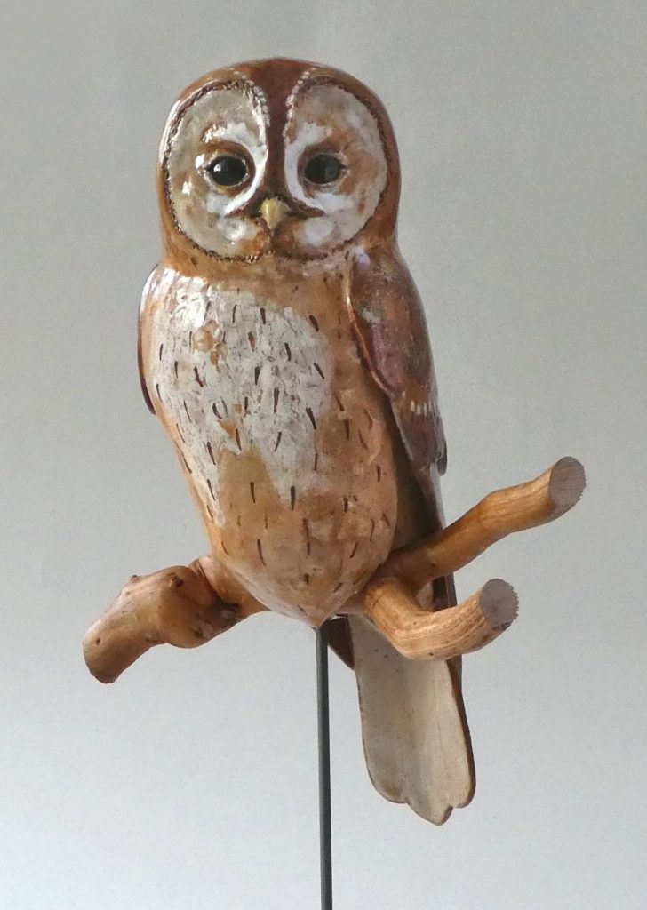 Zo is de grote bosuil geworden. Ik ben heel tevreden over het gezicht en de ogen. Hij heeft een mooie peinzende blik!