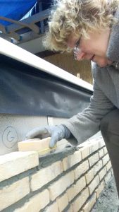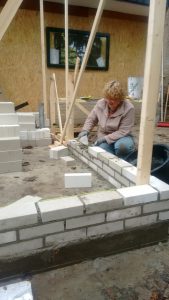 Het bijkeukentje wat mijn atelier was, is tegen de vlakte gegaan en we maken nu een grotere uitbouw. Omdat mijn man en ik vrij handig zijn, doen we weer heel veel zelf. Zo heb ik leren metselen (veel youtube filmpjes bekeken). Zo ingewikkeld blijkt dat nu ook weer niet. Het is vooral een kwestie van secuur werken.
