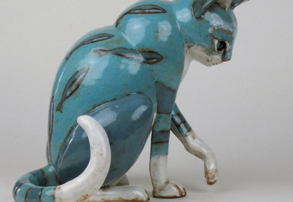 Met het pootje hengelend langs de rand van de vijver op jacht naar visjes. Maar waar zijn ze toch…?