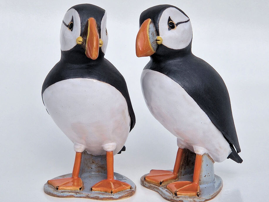 Elegante vogels: kluten. Maar erg lastig om te maken vanwege de lange dunne snavel. Op de hoge temperatuur waarop ze worden gebakken, wordt klei zacht. De snavel die elegant omhoog hoort te wippen, zakt dan treurig naar beneden. Het wordt dan meer een wulpensnavel. Maar ik bedacht me dat ik wél een poetsende kluut kan