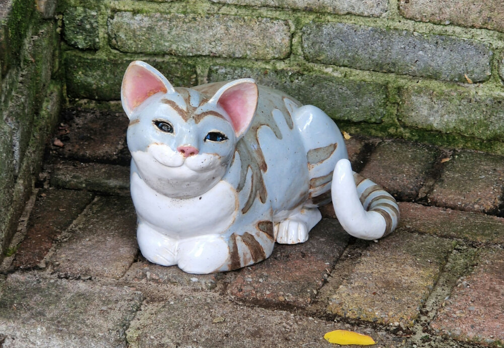 Ik heb dit najaar twee katten gemaakt die ik eens anders heb gedecoreerd. Normaal gebruik ik glazuur waarin oxides en pigmenten zijn gemengd. Maar bij deze kat is de cobaltoxide direct op de klei aangebracht. Meer informatie vind je in het bericht met de oranje kat.