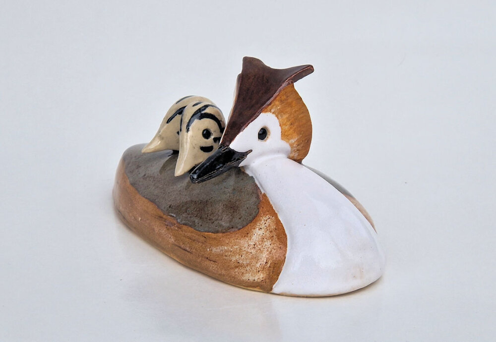 Elegante vogels: kluten. Maar erg lastig om te maken vanwege de lange dunne snavel. Op de hoge temperatuur waarop ze worden gebakken, wordt klei zacht. De snavel die elegant omhoog hoort te wippen, zakt dan treurig naar beneden. Het wordt dan meer een wulpensnavel. Maar ik bedacht me dat ik wél een poetsende kluut kan