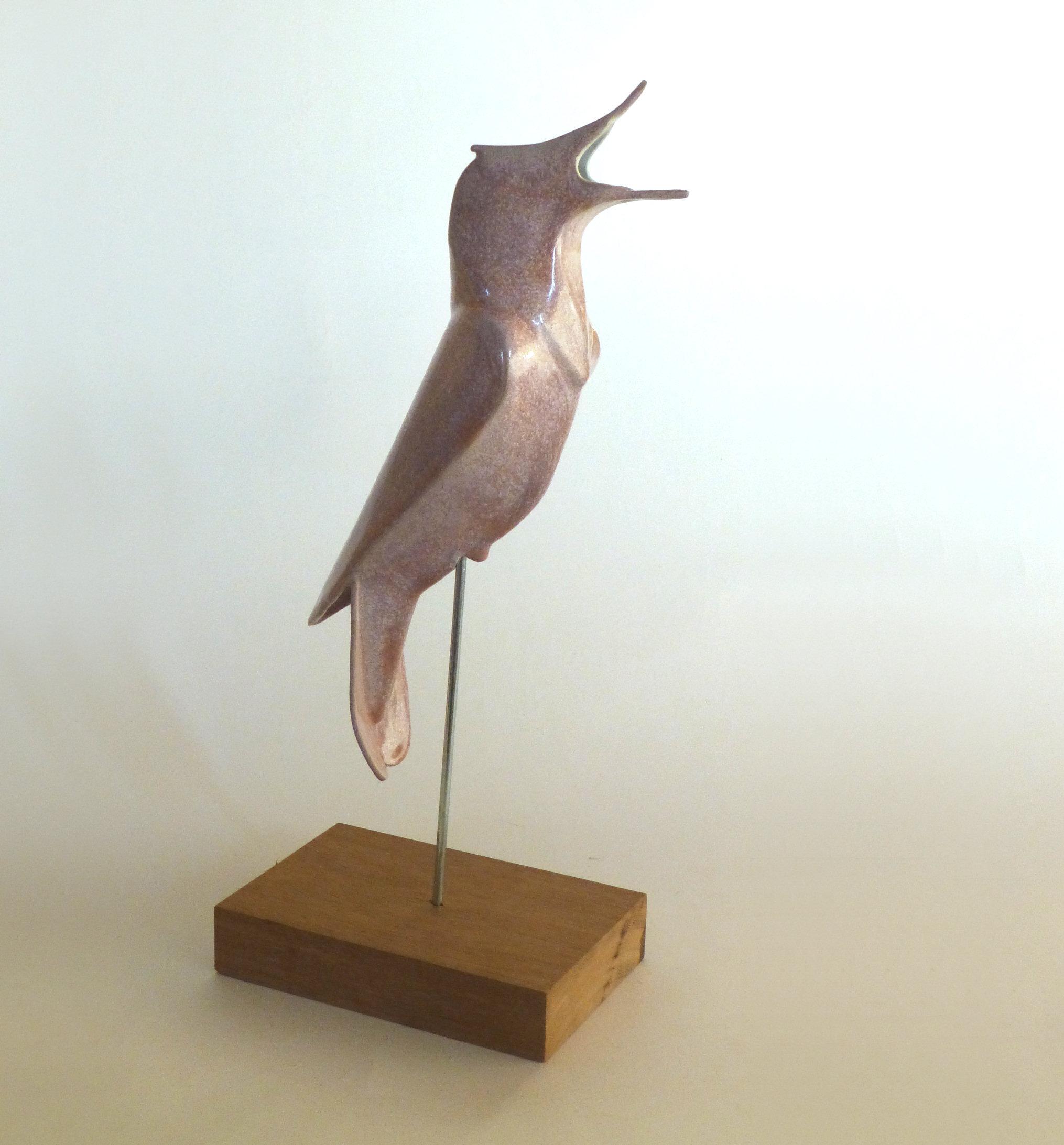 Het glazuren blijft altijd een secuur werkje. Hopelijk lukt het goed en kan ook deze raaf mee naar de expositie in Bergschenhoek. En zo is hij uiteindelijk geworden: “Quiet observer”